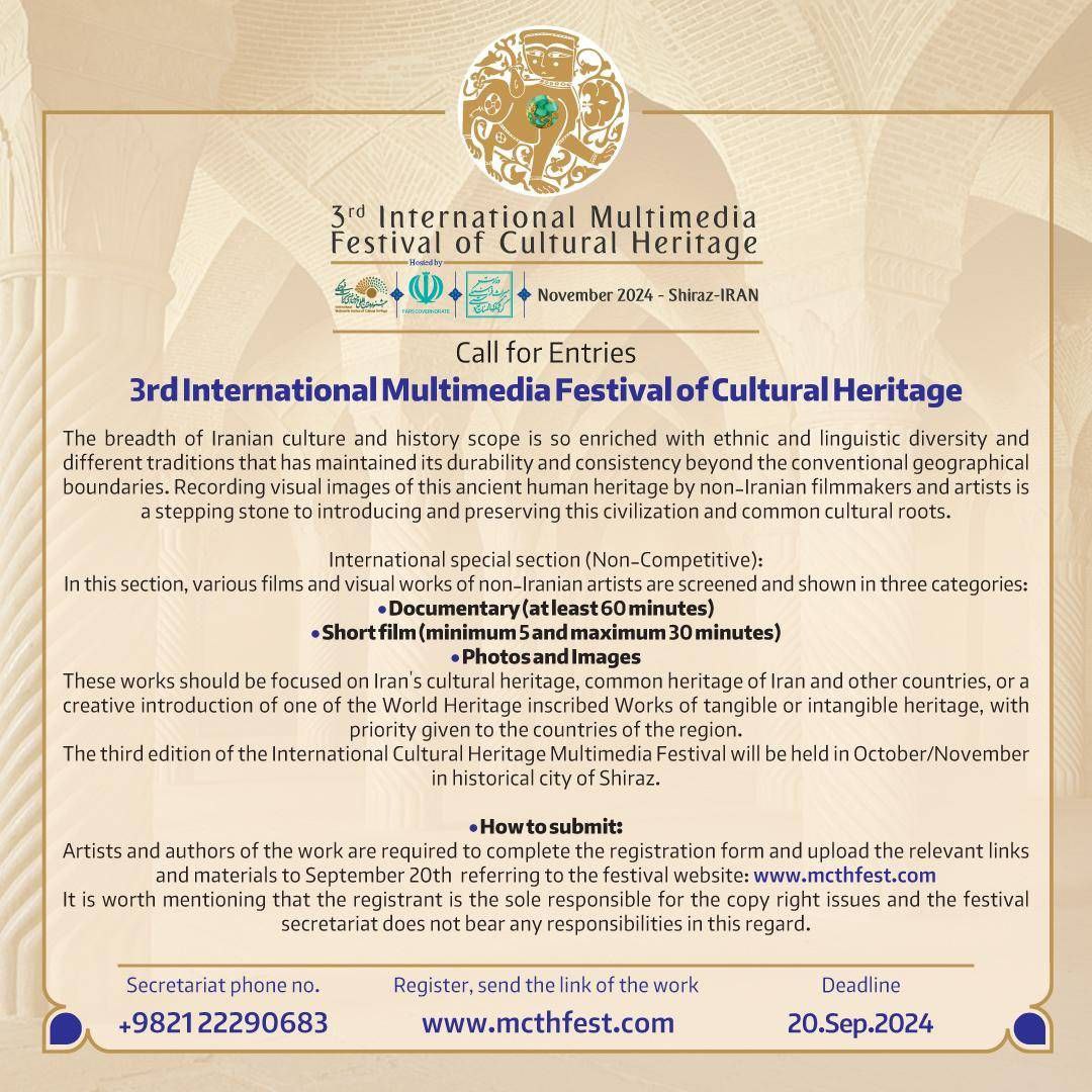 The Third International Cultural Heritage Multimedia Festival will be hosted in Fars Province and the city of Shiraz in November 2024.